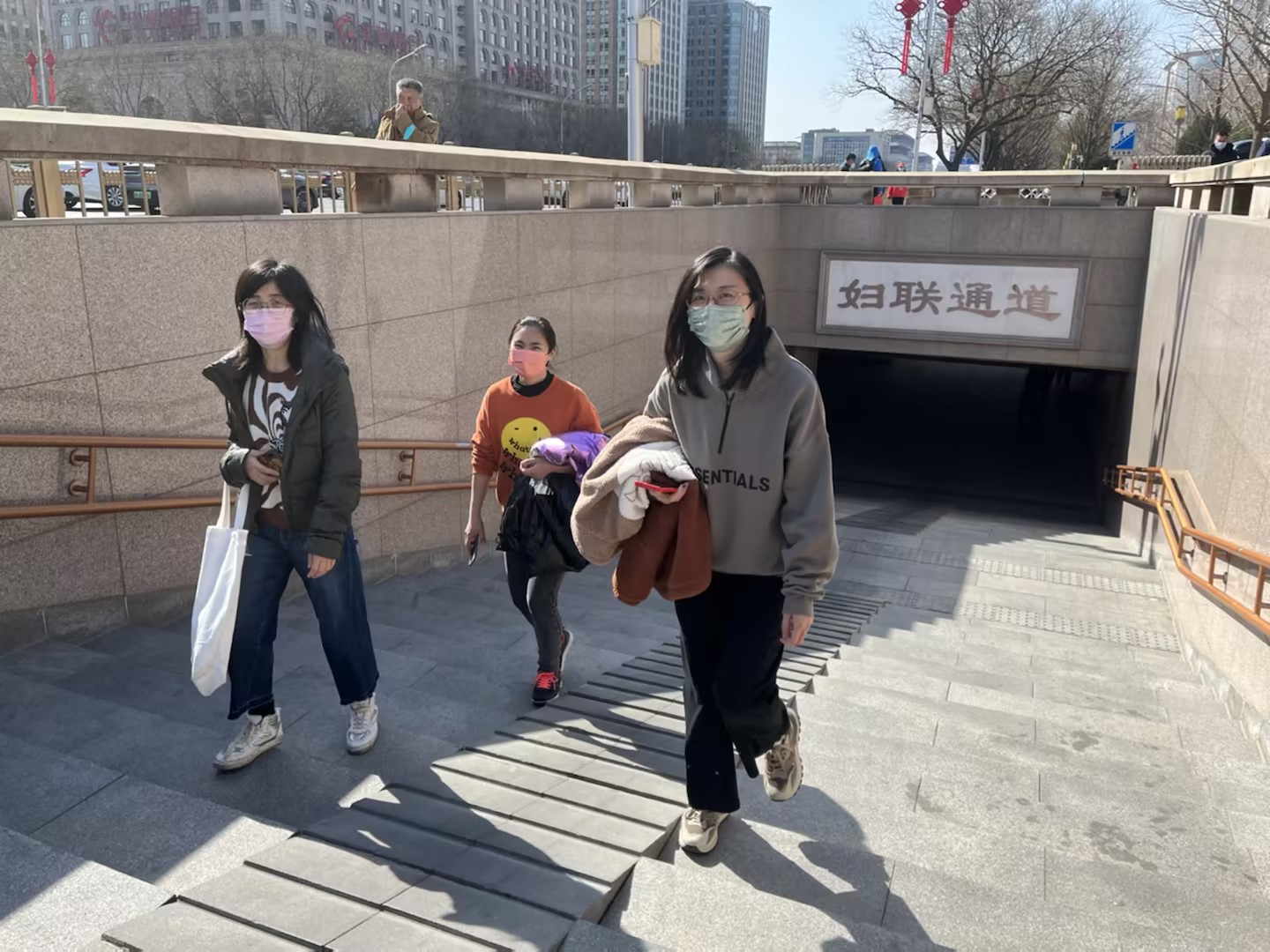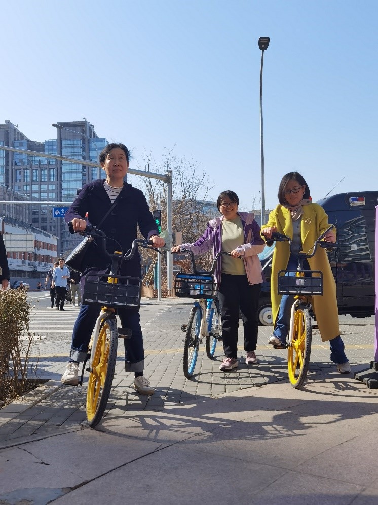 女職工騎行前往展覽館